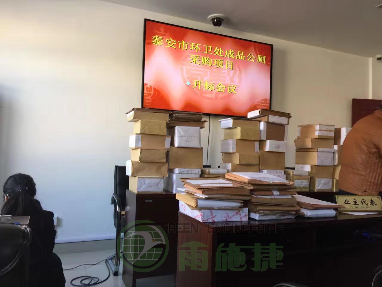 前段時間泰安市環衛處發布了一個招標公告,針對泰安東部,中部,西部分別進行成品廁所的采購,在廁所格局上也相當的用心,同時滿足現代城市人的功能需求,又從外觀、色調、裝飾等各個角度精心打造,為市民及游客提供更加便利的服務。這個項目吸引了全國各地幾十家廠商的關注,今天我們北京雨施捷工程技術有限公司也參與了這個項目,現場的氣氛相當的緊張,從上午九點半到目前發稿時還沒有評標結果,希望我們能贏得頭彩哦!