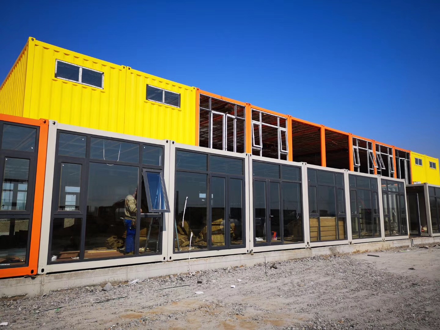 雨施捷王總介紹到,此項(xiàng)目為集裝箱房屋通體采用鋼結(jié)構(gòu)為主體材料生產(chǎn)而成,具有較好 的抗風(fēng)性抗震性,適應(yīng)地勢地形環(huán)境能力強(qiáng)。