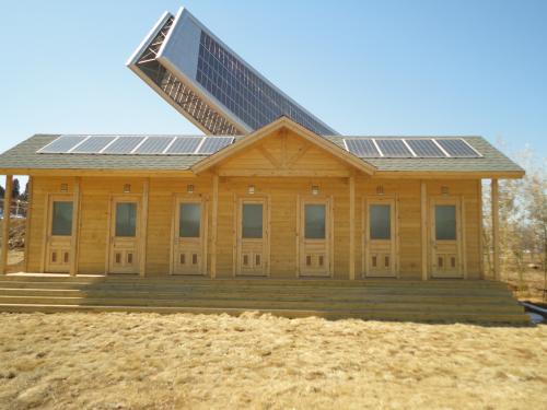 太陽能公廁屬于一種生態(tài)性廁所不僅可以建成固定式的結(jié)構(gòu)。另外由于其配套處理設(shè)施小巧,對外界的依賴除電力外,幾乎沒有,因此具有可移動的特點,是移動型和臨時性廁所的選擇。