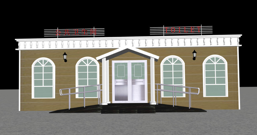 生態移動廁所外墻采外觀造型美觀大方,線條流暢,環保廁所能體現現代氣味,與現代城市景觀相協調。外墻用金屬雕花板或鋁塑板,沖水噴洗即可除塵,不褪色、不剝落;不宜老化;具有韌性、不易損壞,隔音隔熱機能強,抗外力沖擊不易碎裂破損;自熄阻燃達到難燃級尺度。