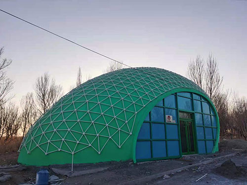 下面就來詳細為大家介紹一下它的設計理念。它的整體造型就是一個放在地上成熟的哈密瓜,是不是看到就有一種想把它吃掉的沖動啊。顏色與哈密瓜的顏色一致,哈密瓜的紋理以鋼龍骨造型呈現,使整個造型更有立體感。門窗采用玻璃幕墻材質,具有采光性好,通風性佳,造型時尚美觀。