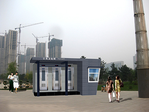 如果是小型移動廁所,還可以在下面安裝滑輪,這樣就可以實現隨時隨地的人工移動,這樣就節省了成本,但是如果是大型廁所人力無法移動,為了方便其移動,要在設計時確定一個能夠承受其重量的受力點,這個受力點還要確保平衡性,方便其以后的隨意移動。移動廁所的房頂一般有尖頂與平頂兩種展現形式,尖頂廁所的受力點在尖頂附近,平頂廁所會在生產時就在確定好的受力點處做好吊鉤,這個吊鉤方便日后的隨時吊裝移動,只需裝吊鉤連接到吊機上就可以實現隨意吊裝移動。