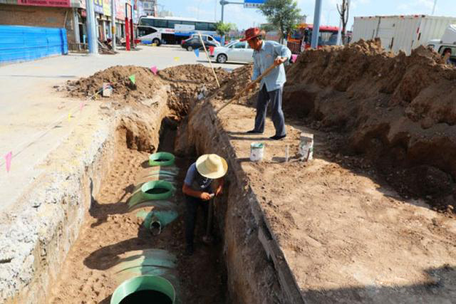 環衛部門組織人員進行公廁及環衛工休息室的基礎施工!